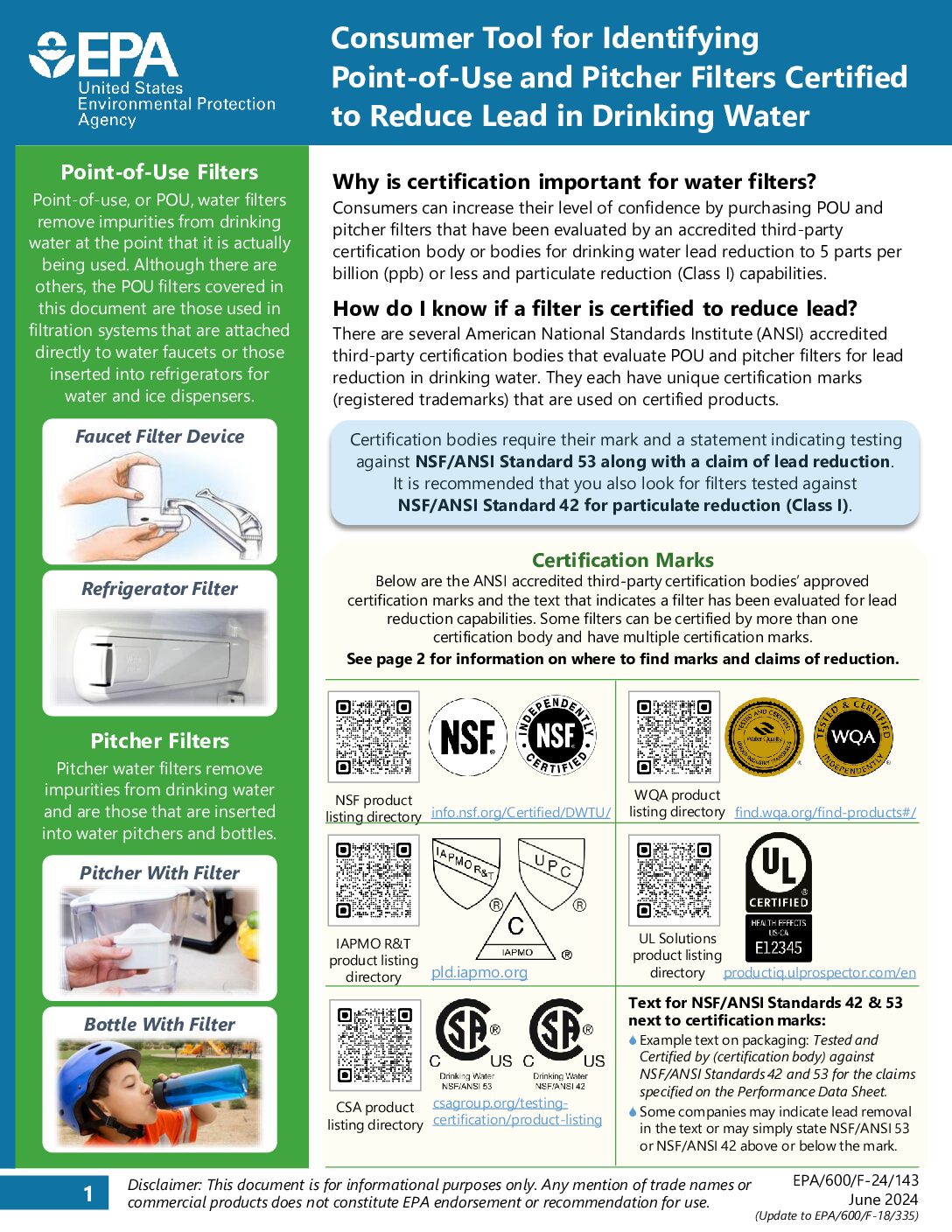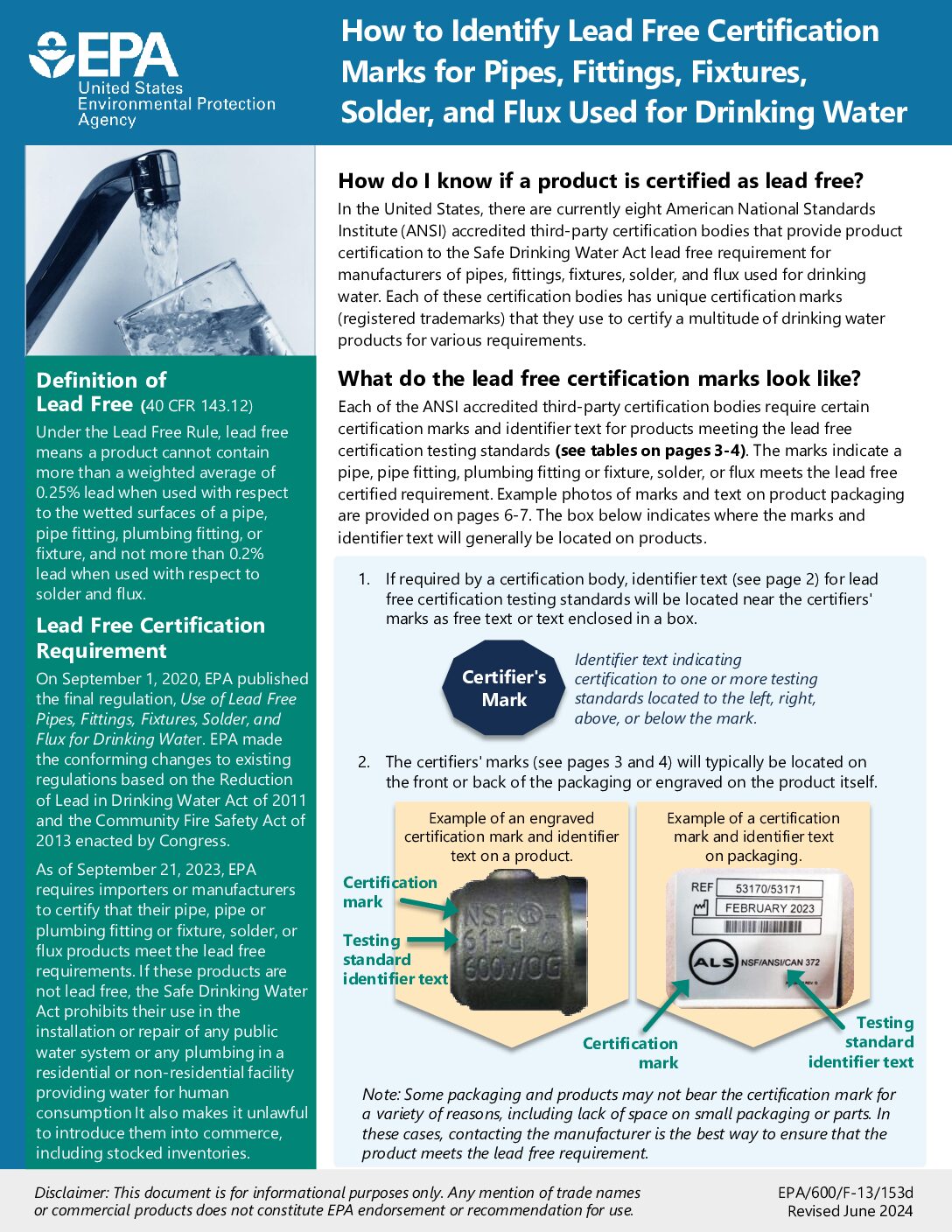 For information identifying potential lead materials in your home or at your property and information on reducing your potential exposure to lead in drinking water, please see the following information provided by the Environmental Protection Agency.